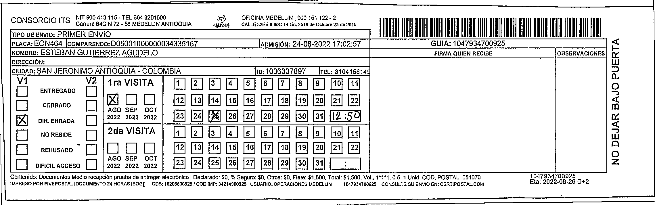 Apache/2.4.65 (Debian) Server at certipostal.public.fivesoft.com.co Port 80