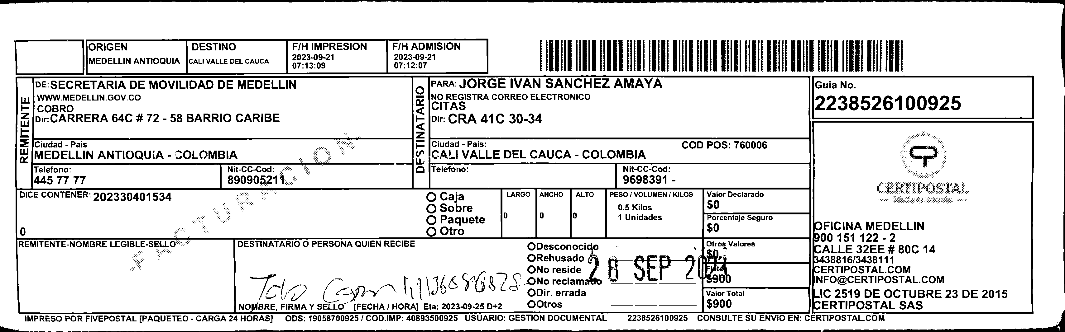 Apache/2.4.65 (Debian) Server at certipostal.public.fivesoft.com.co Port 80