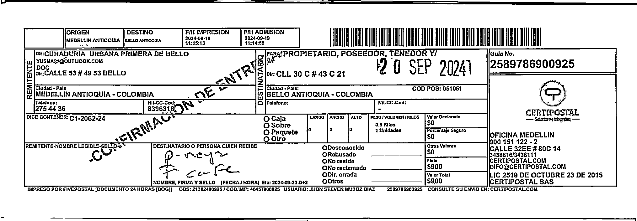 Apache/2.4.65 (Debian) Server at certipostal.public.fivesoft.com.co Port 80