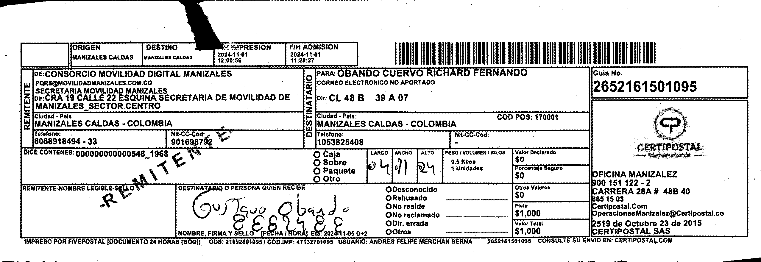 Apache/2.4.65 (Debian) Server at certipostal.public.fivesoft.com.co Port 80
