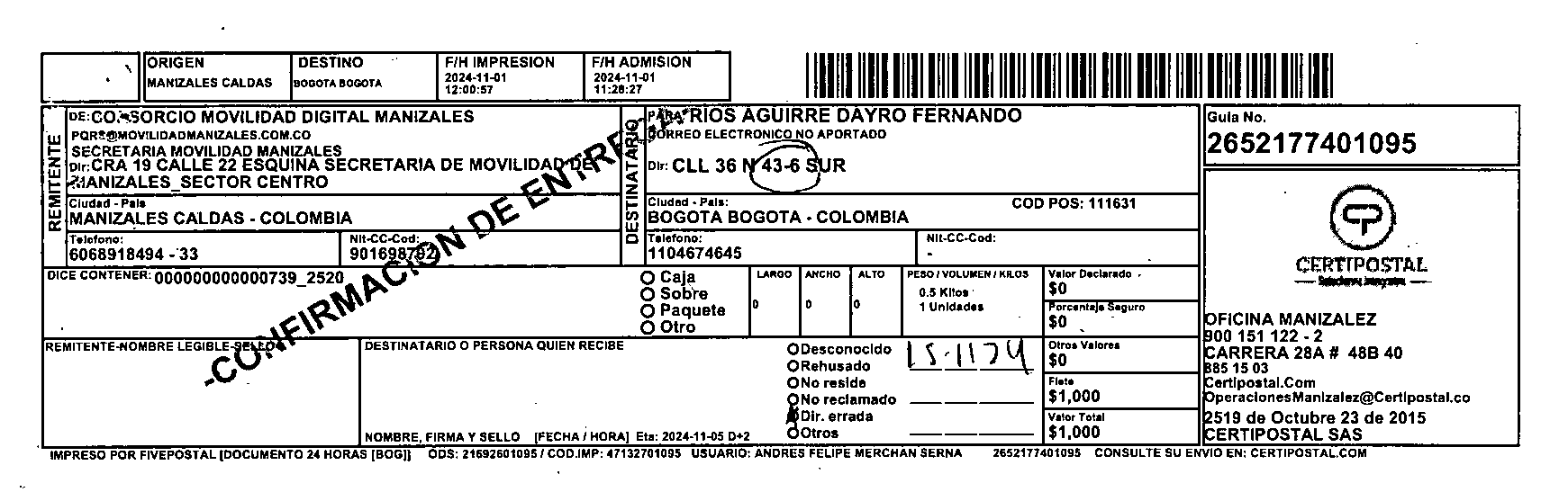 Apache/2.4.65 (Debian) Server at certipostal.public.fivesoft.com.co Port 80