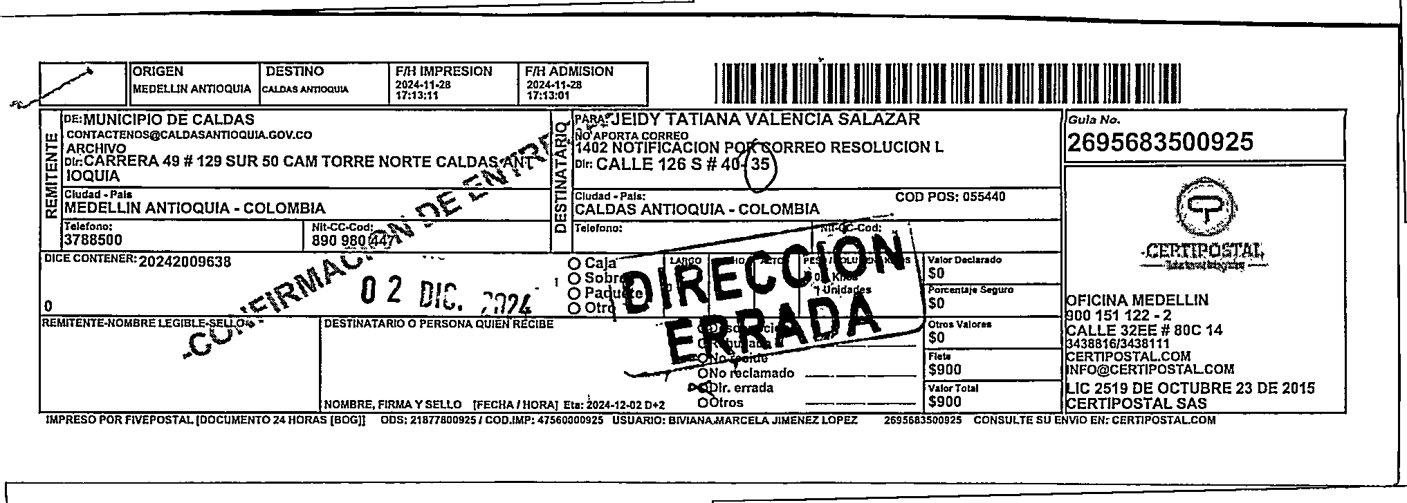 Apache/2.4.65 (Debian) Server at certipostal.public.fivesoft.com.co Port 80