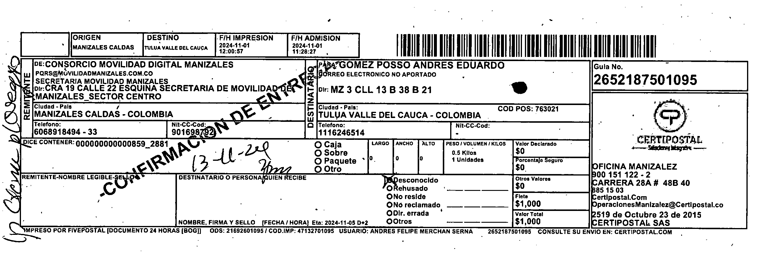 Apache/2.4.65 (Debian) Server at certipostal.public.fivesoft.com.co Port 80