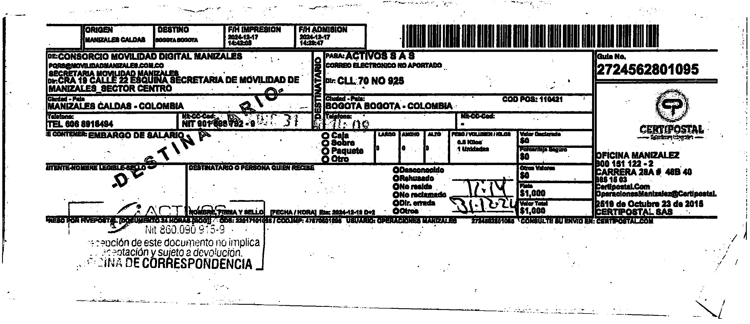 Apache/2.4.65 (Debian) Server at certipostal.public.fivesoft.com.co Port 80