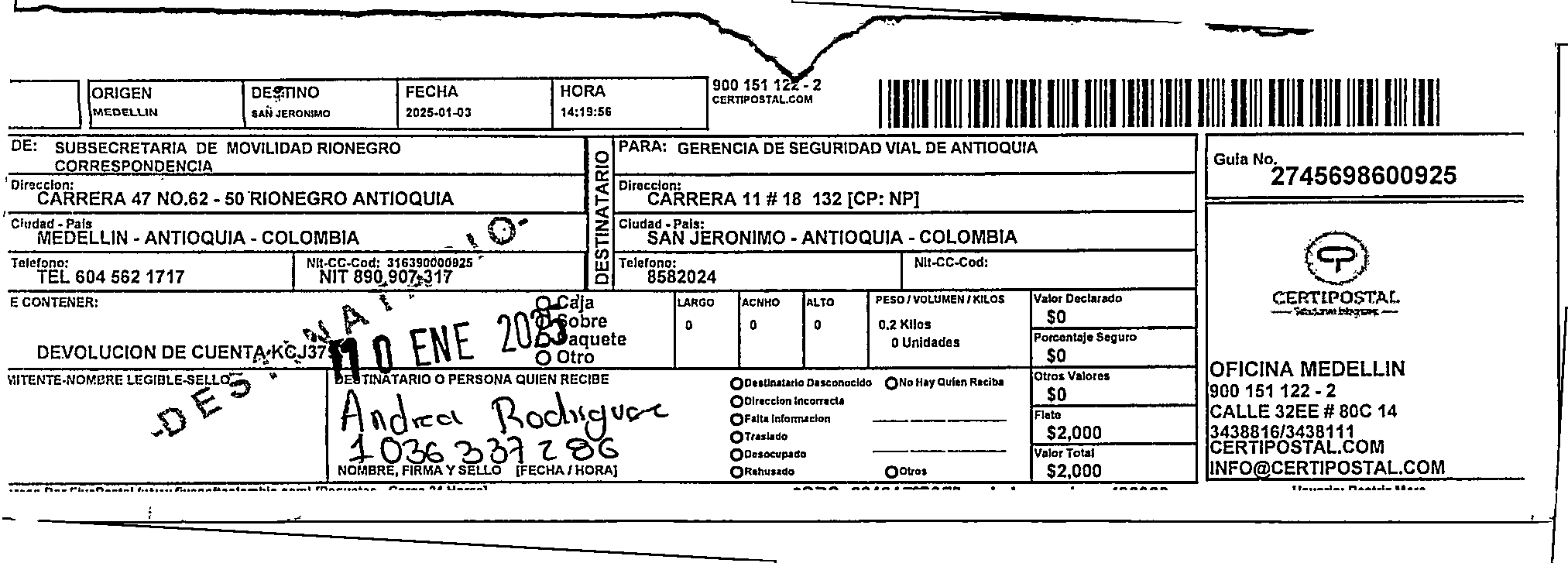 Apache/2.4.65 (Debian) Server at certipostal.public.fivesoft.com.co Port 80