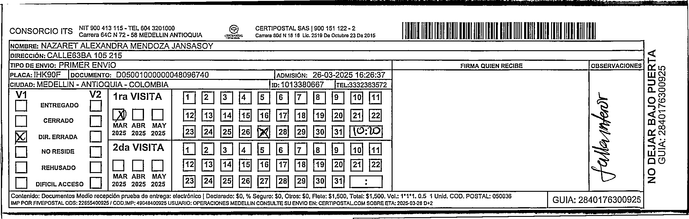 Apache/2.4.65 (Debian) Server at certipostal.public.fivesoft.com.co Port 80
