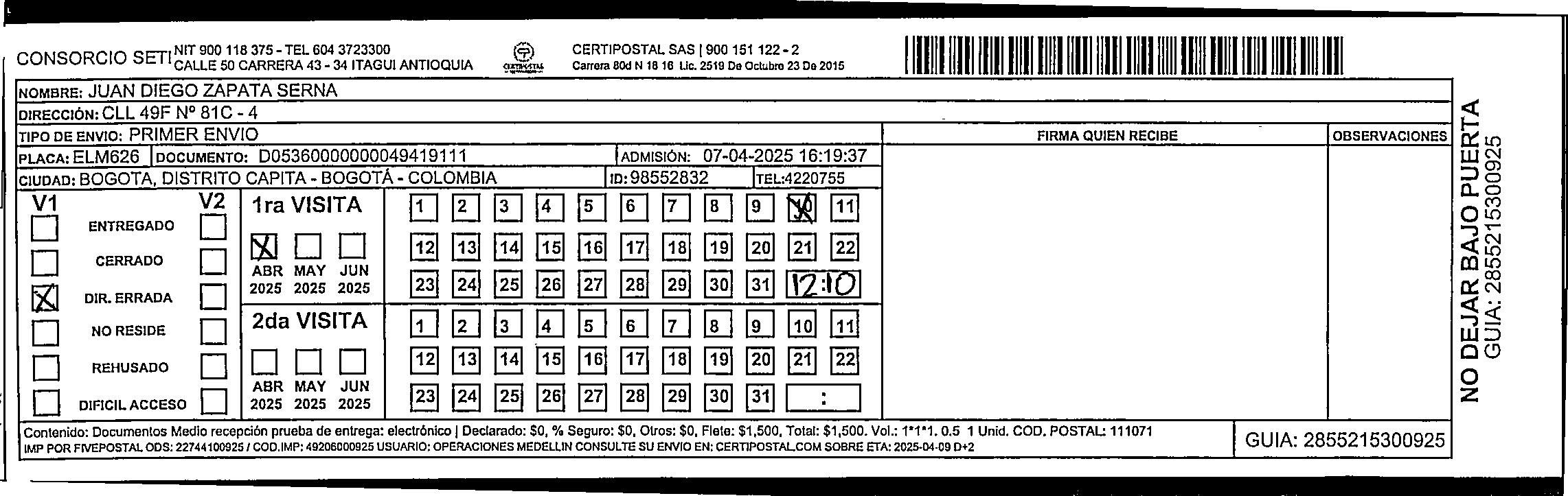 Apache/2.4.65 (Debian) Server at certipostal.public.fivesoft.com.co Port 80
