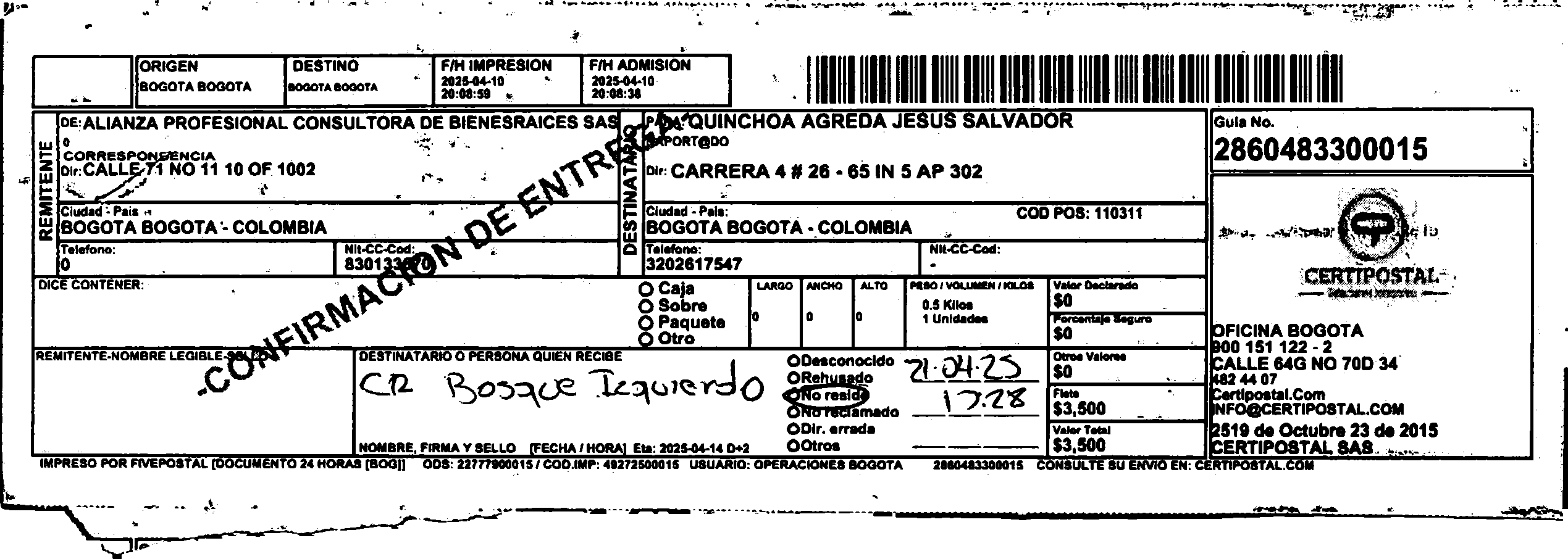 Apache/2.4.65 (Debian) Server at certipostal.public.fivesoft.com.co Port 80
