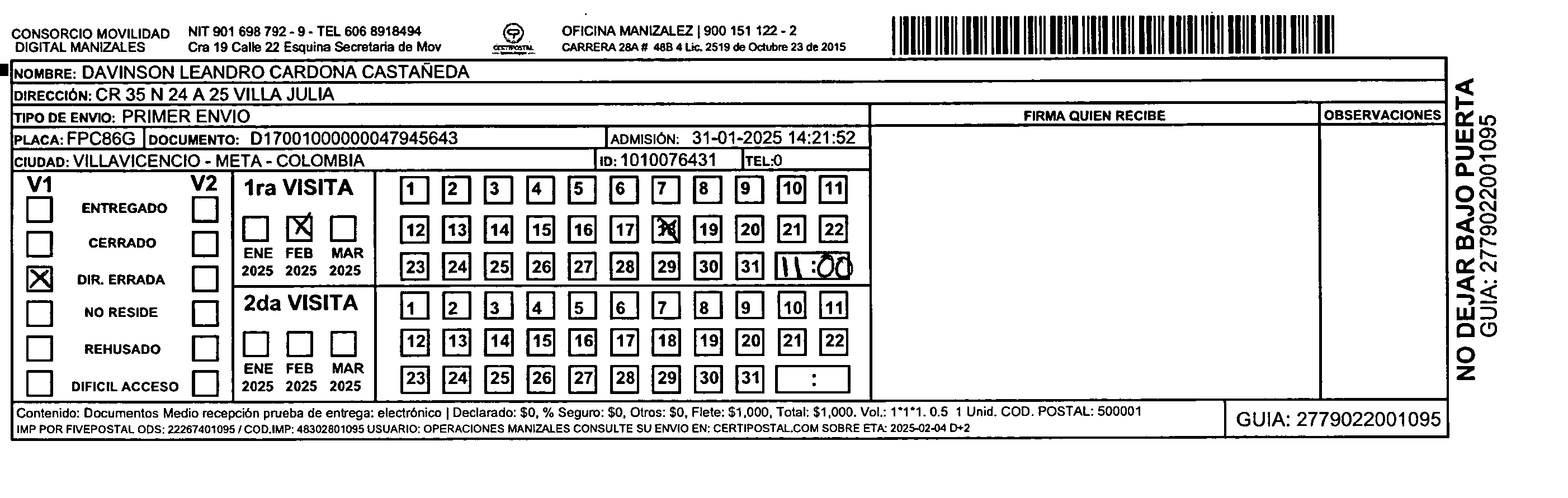 Apache/2.4.65 (Debian) Server at certipostal.public.fivesoft.com.co Port 80