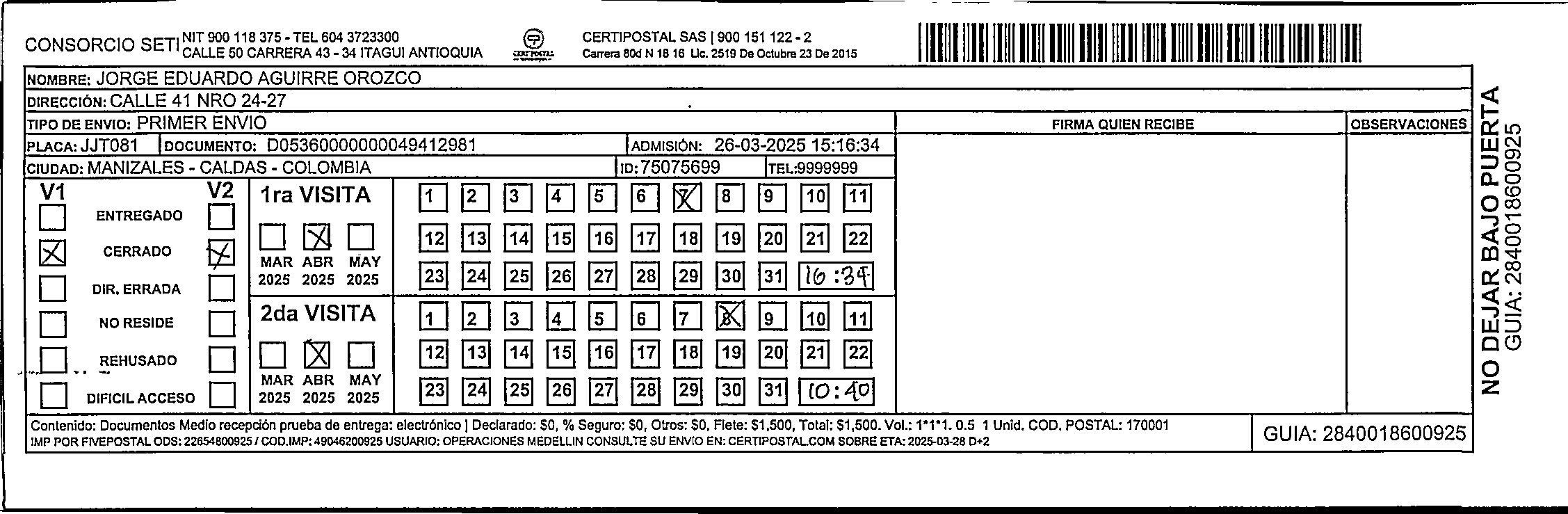 Apache/2.4.65 (Debian) Server at certipostal.public.fivesoft.com.co Port 80