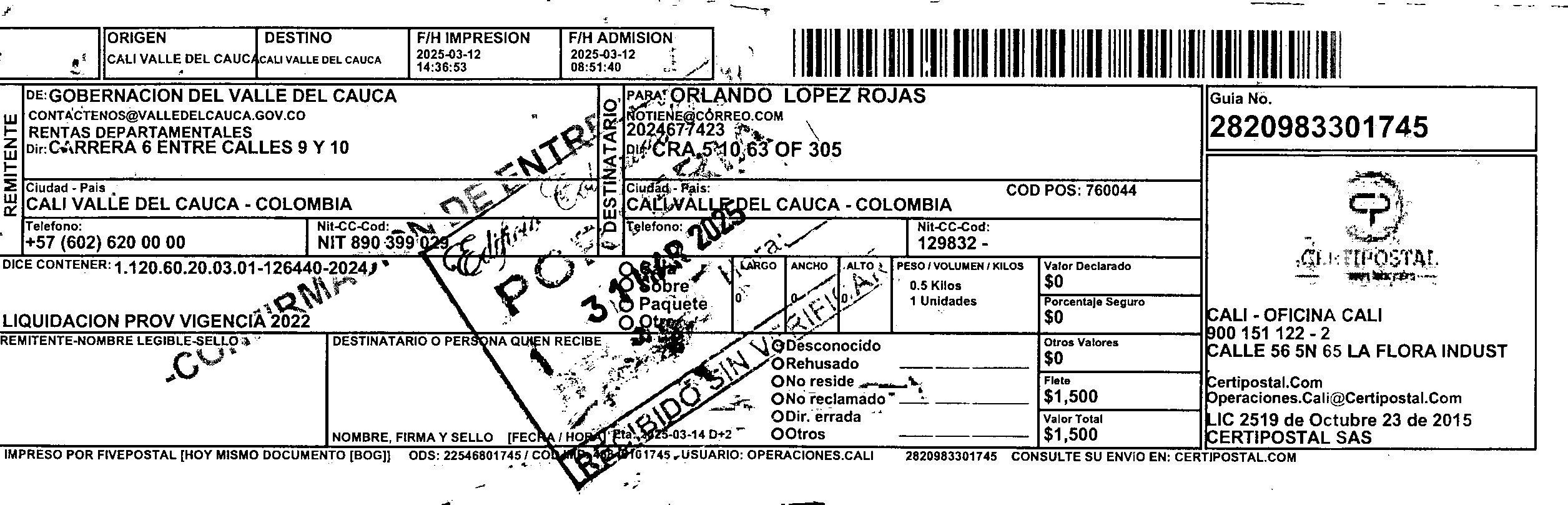 Apache/2.4.65 (Debian) Server at certipostal.public.fivesoft.com.co Port 80