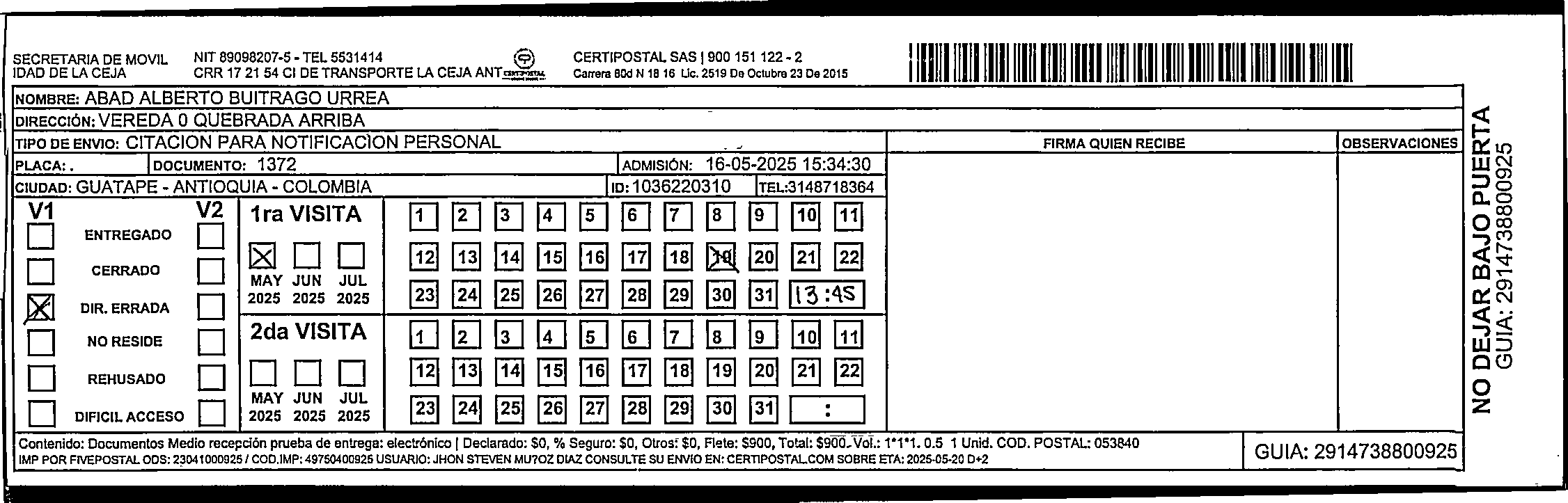 Apache/2.4.65 (Debian) Server at certipostal.public.fivesoft.com.co Port 80