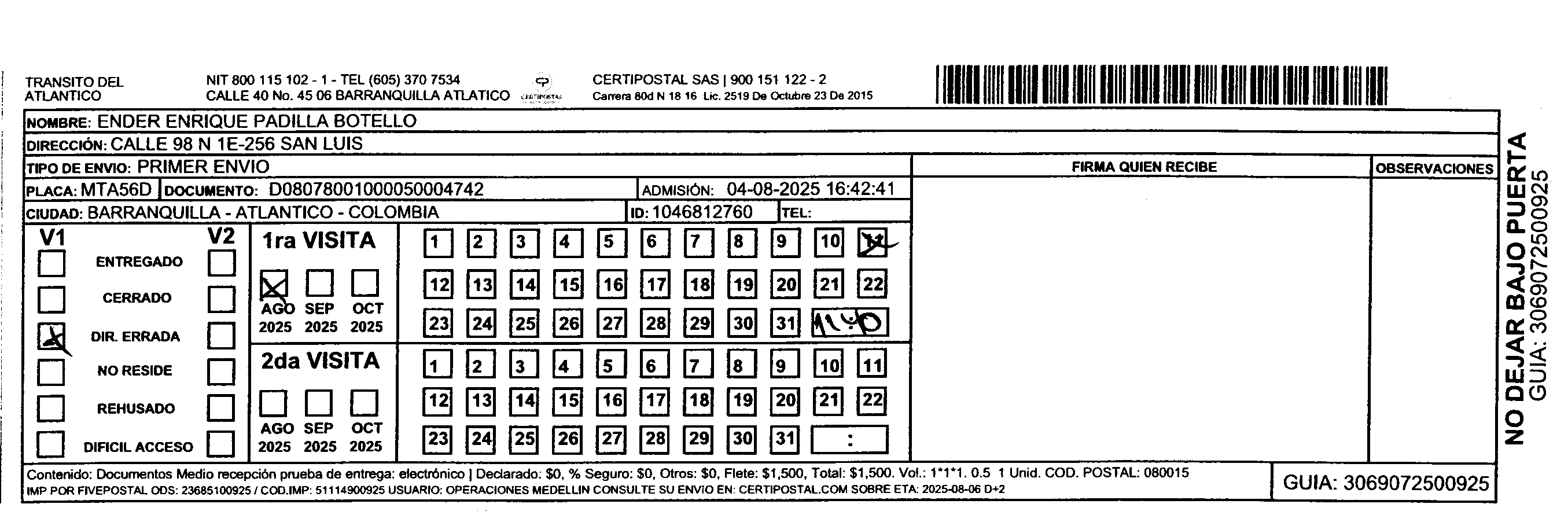 Apache/2.4.65 (Debian) Server at certipostal.public.fivesoft.com.co Port 80
