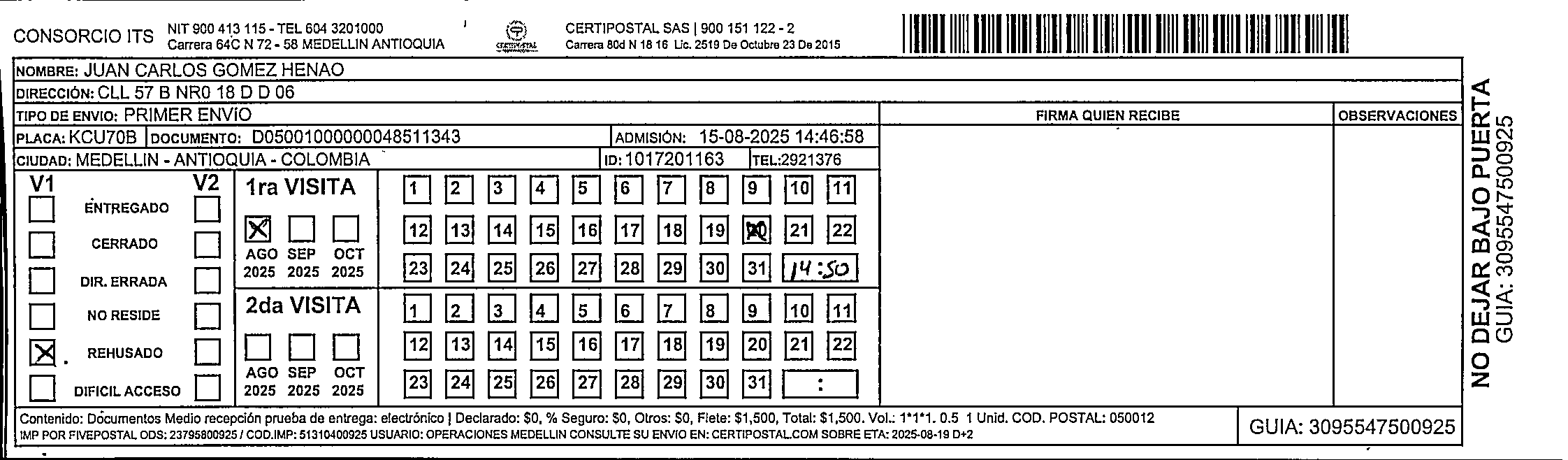Apache/2.4.65 (Debian) Server at certipostal.public.fivesoft.com.co Port 80