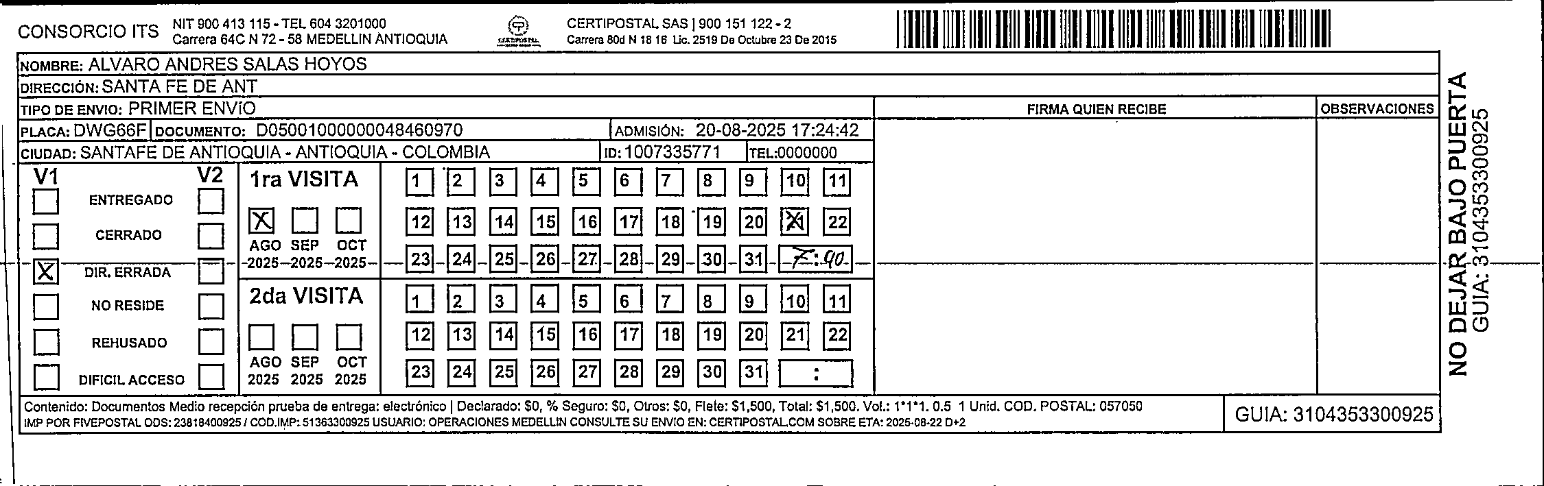 Apache/2.4.65 (Debian) Server at certipostal.public.fivesoft.com.co Port 80