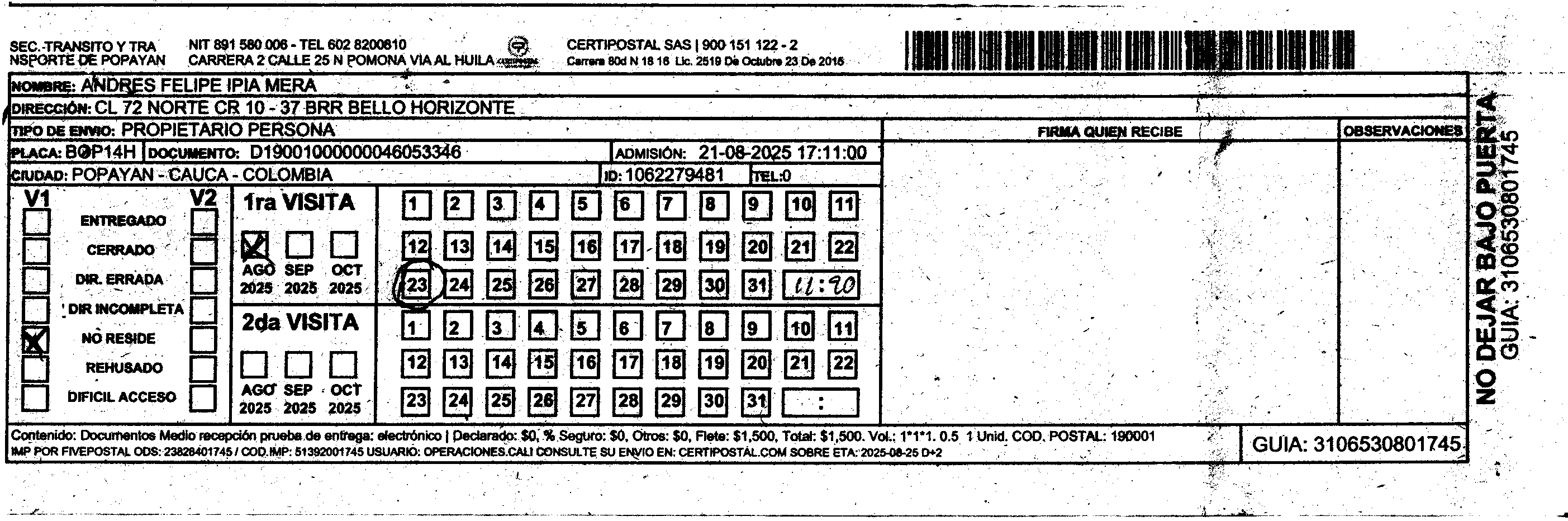 Apache/2.4.65 (Debian) Server at certipostal.public.fivesoft.com.co Port 80