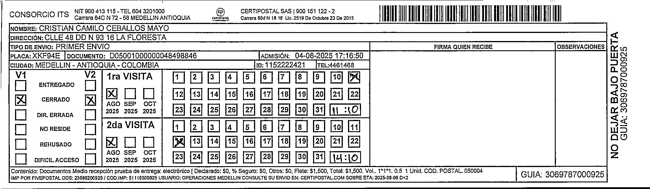 Apache/2.4.65 (Debian) Server at certipostal.public.fivesoft.com.co Port 80