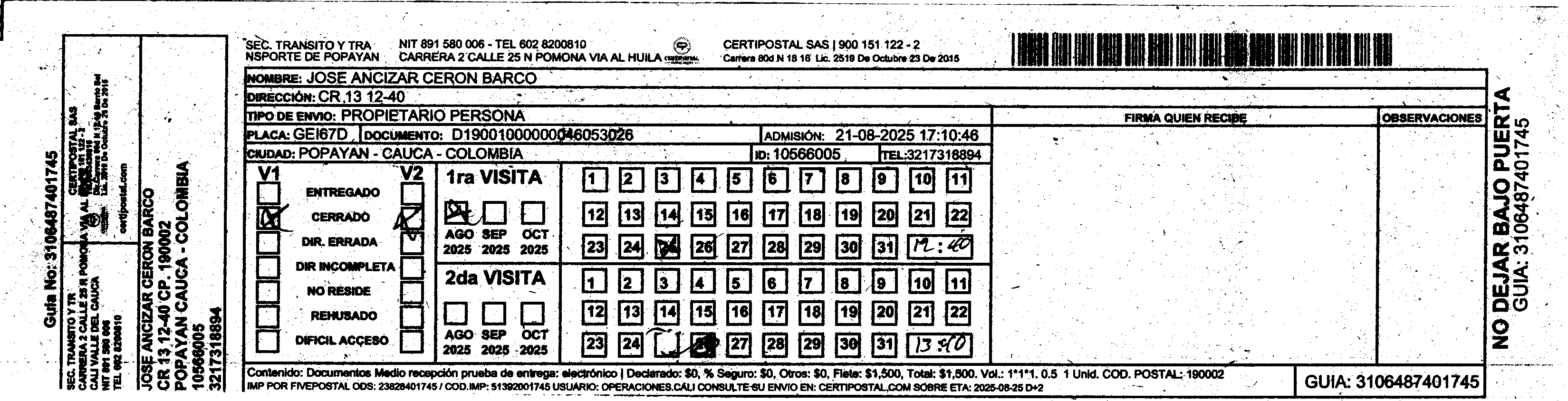 Apache/2.4.65 (Debian) Server at certipostal.public.fivesoft.com.co Port 80