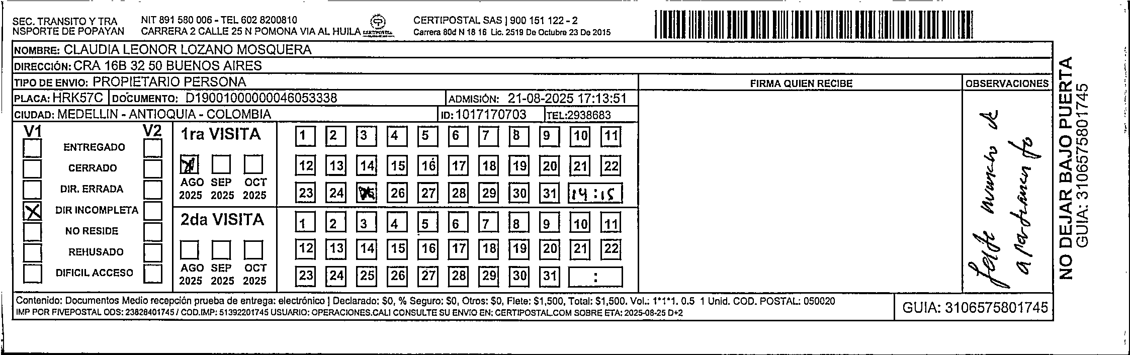 Apache/2.4.65 (Debian) Server at certipostal.public.fivesoft.com.co Port 80
