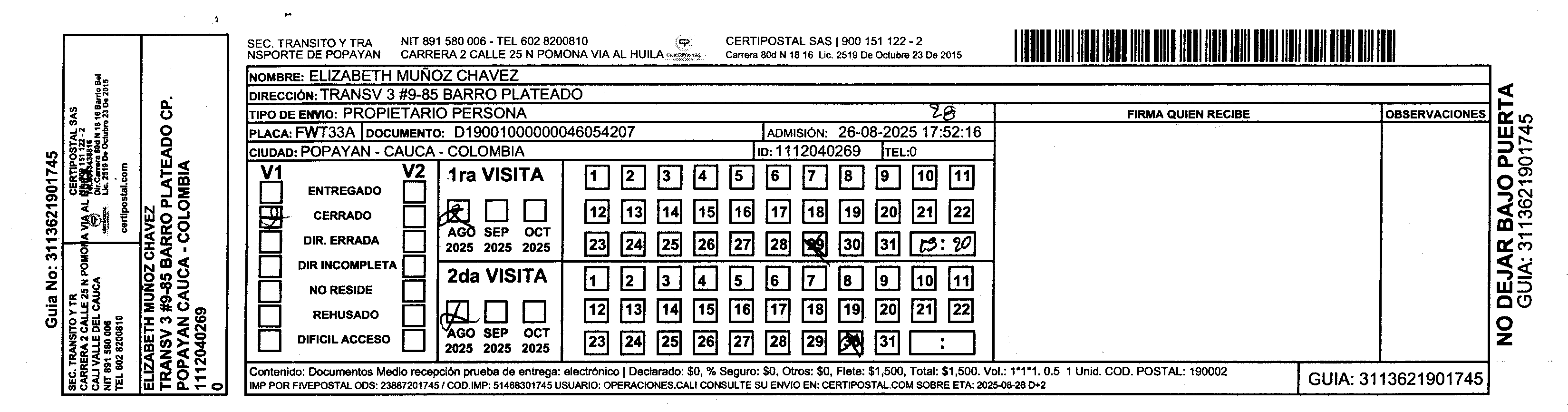 Apache/2.4.65 (Debian) Server at certipostal.public.fivesoft.com.co Port 80