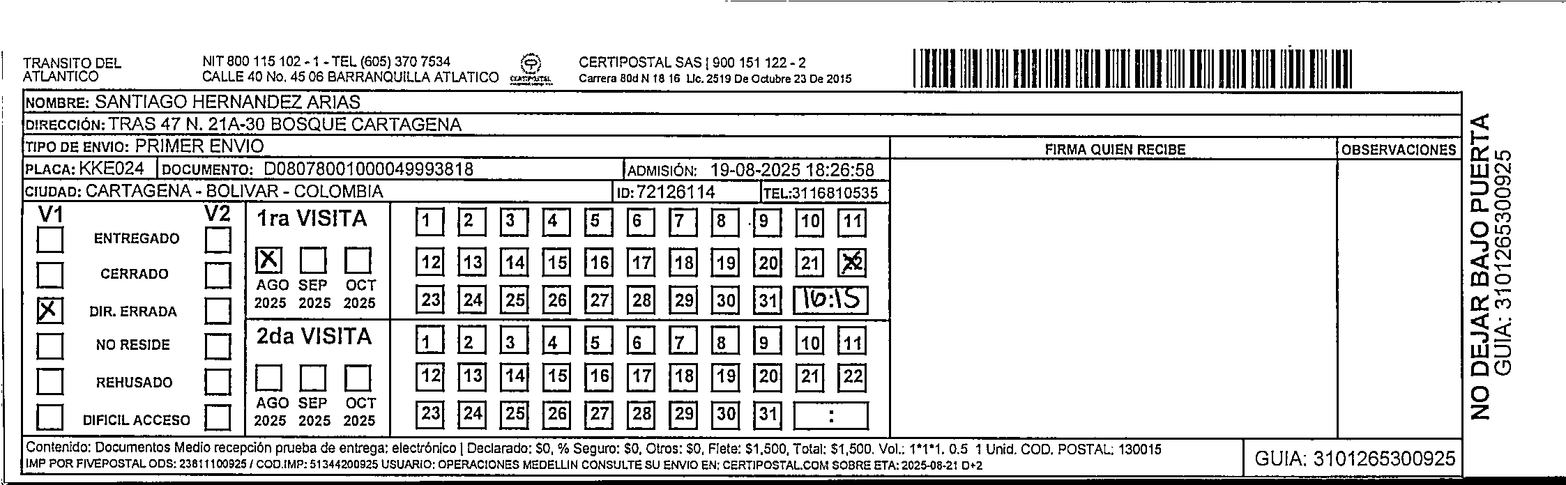 Apache/2.4.65 (Debian) Server at certipostal.public.fivesoft.com.co Port 80